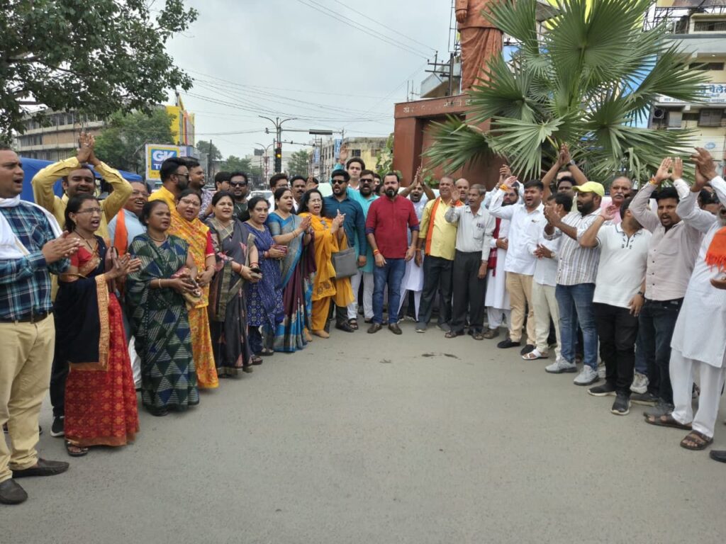 बिहार के दरभंगा में हुए कांग्रेस नेता राहुल गांधी की सभा में प्रधानमंत्री नरेंद्र मोदी के माता जी पर किए अपशब्दों के प्रयोग को लेकर आज भारतीय जनता युवा मोर्चा के कार्यकर्ताओं ने पूरी ताकत से प्रतिकार करने के मूड से सड़क पर उतरे युवामोर्चा ने आज पुराना बस स्टैंड स्थित डॉ श्यामा प्रसाद मुखर्जी चौक पर इकठ्ठा होकर नारेबाजी करते हुए राहुल गांधी और कांग्रेस पार्टी का पुतला फूंका इस अवसर पर दीपक सिंह,मोहित जायसवाल,निखिल केशरवानी,कृष्णकुमार कौशिक,प्रणव शर्मा,रितेश अग्रवाल,जयश्री चौकसे,चंद्रप्रकाश सूर्या,ऋषभ चतुर्वेदी,महर्षि बाजपेई,नितिन छाबड़ा,मोनू रजक, इन्शु गुप्ता,तुषार चंद्राकर,ज्ञानेंद्र कश्यप,सन्नी केशरी,अंचल दुबे,केतन वर्मा,अंकित गुप्ता,अनिल सूर्या,अभिषेक चौबे,जय वाधवानी,रामा गुप्ता,संध्या चौधरी,नीरज सिन्हा,रोशन राशि,मो.बरकाती,यश गोरहा आदि कार्यकर्ता उपस्थित थे।