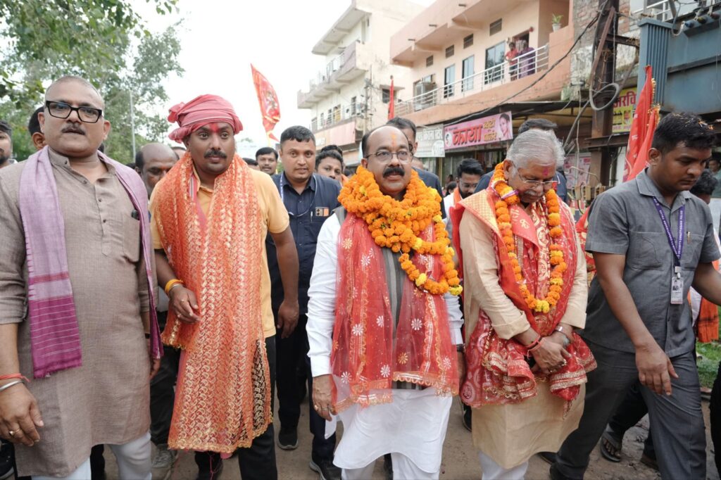 बेलतरा विधायक सुशांत शुक्ला की ध्वजायात्रा 40 गावों की यात्रा पूरी कर नवरात्रि के पांचवें दिन लगभग 151 किलोमीटर की यात्रा कर शहर पहुंची तो वार्ड के रहवासियों ने उनका जोरशोर से स्वागत किया वही केंद्रीय मंत्री,डिप्टी सीएम सहित जिले के विधायकों के यात्रा में शामिल हो कर यात्रा में चल रहे श्रद्धालुओं के उत्साह को दोगुना कर दिया