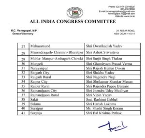 छत्तीसगढ़ कांग्रेस ने जिला अध्यक्षों की सूची जारी की,, बिलासपुर शहर मे सुधांशु मिश्रा को मिली जिम्मेदारी,,, बिलासपुर ग्रामीण की कमान महेंद्र गंगोत्री को मिली